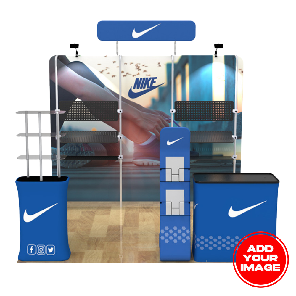 ✅ Includes 10ft flat backwall + flat header for strong branding presence