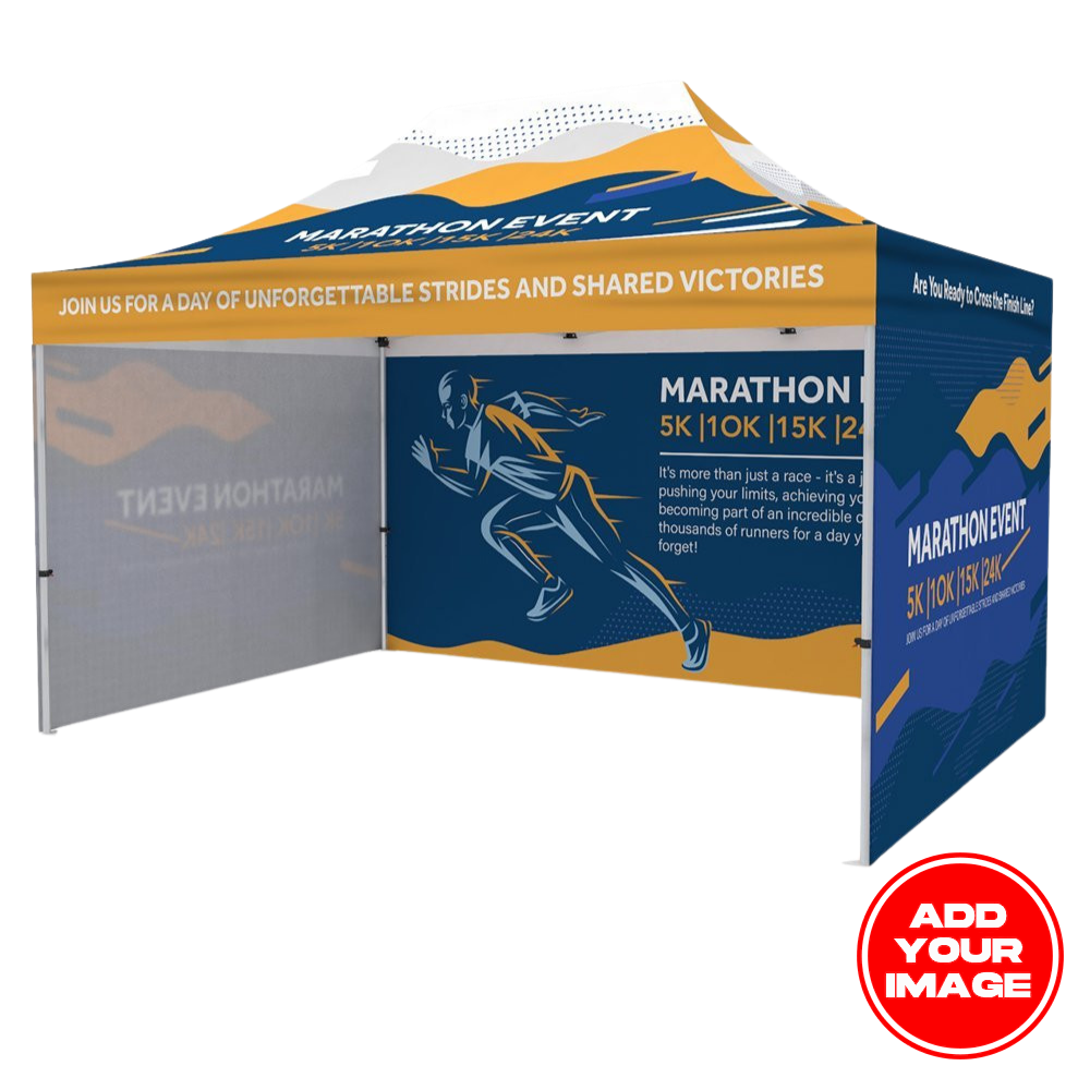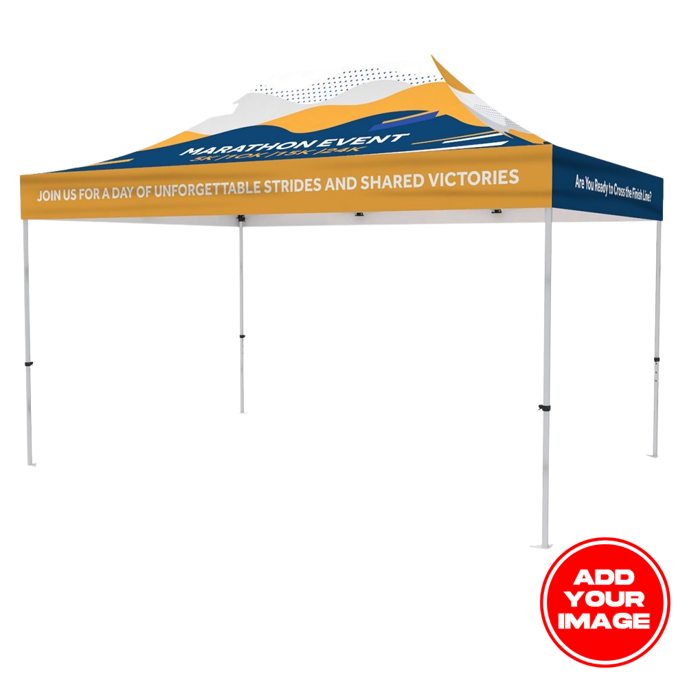 Elevate your event setup with the Custom 10' x 15' Event Tent Canopy, made for trade shows, pop-up booths, outdoor markets, and brand activations. Built with a sturdy 40mm aluminum hex frame and a full-color dye-sublimated canopy, it delivers bold, professional branding from every angle—while staying durable, portable, and quick to set up for repeat event use.