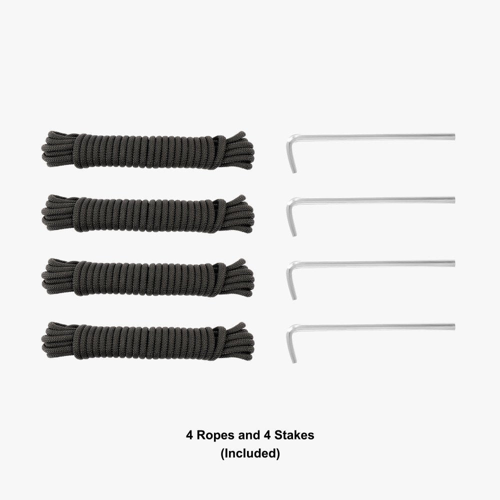 ✓ SECURE & EVENT-READY PACKAGE – Includes ropes, stakes, foot plates, and a standard carry bag for transport and stability.