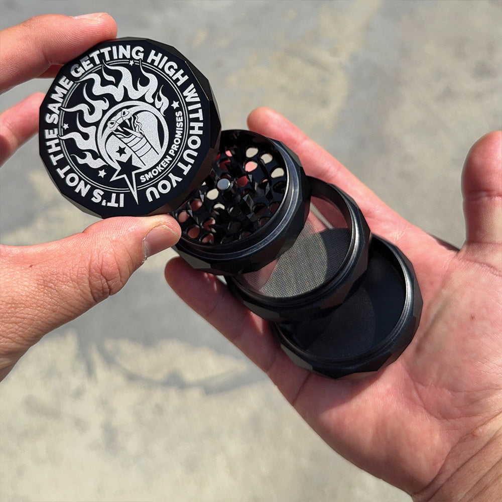 This anodized aluminum grinder features razor-sharp diamond teeth, magnetic lid, and four chambers with a scraper tool. Built for performance and designed for style.