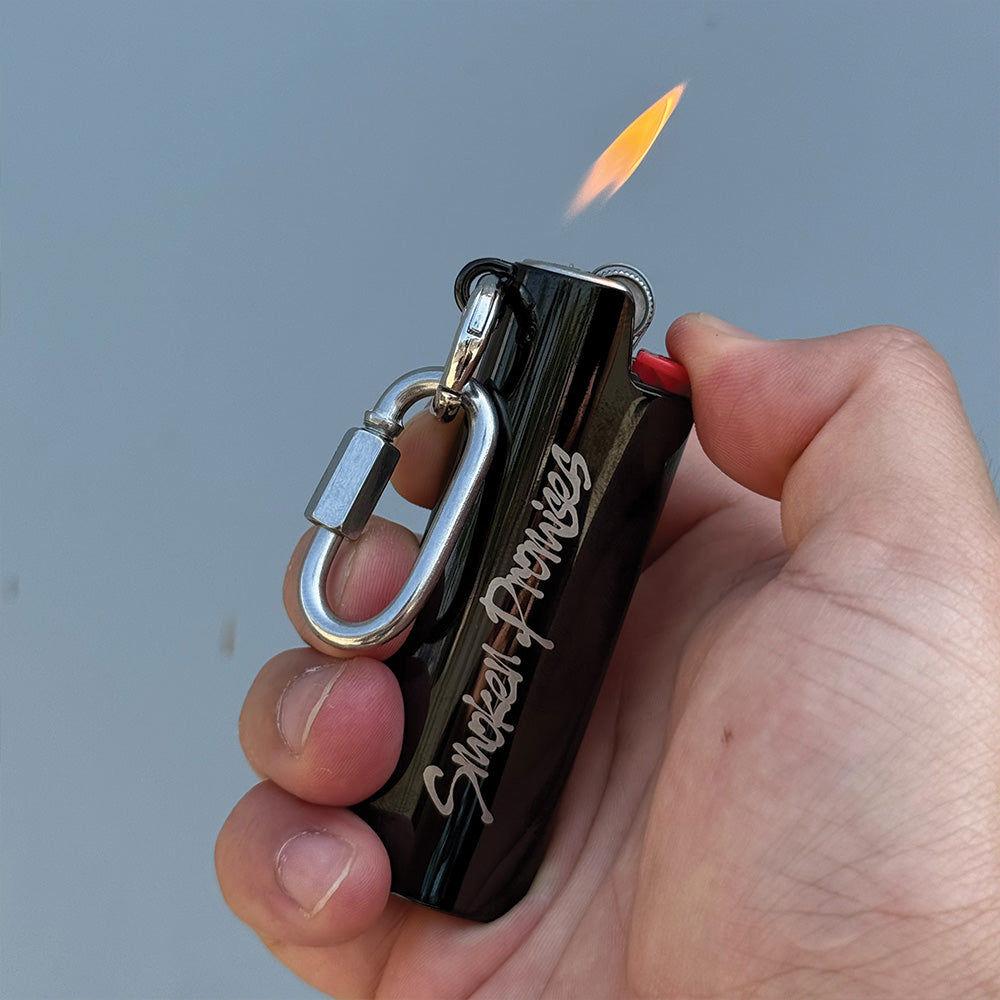 Add style and protection to your lighter with this durable stainless steel case. Fits standard BIC models snugly and features a keychain hook for easy carry.