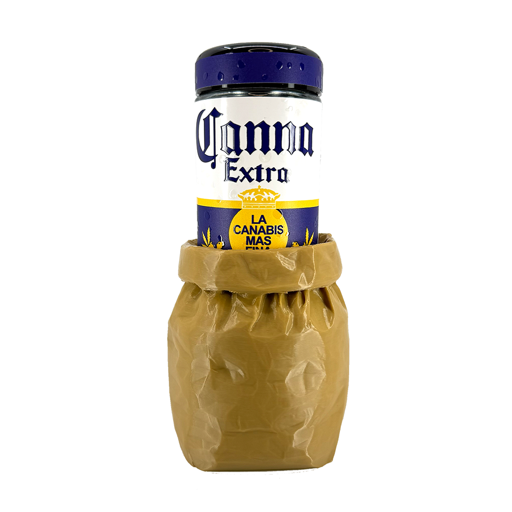 Each unit includes a 150ml decorative glass jar nested inside a 3D-printed brown bag sleeve, sculpted with realistic folds and texture for that iconic “paper bag” look—without the paper.