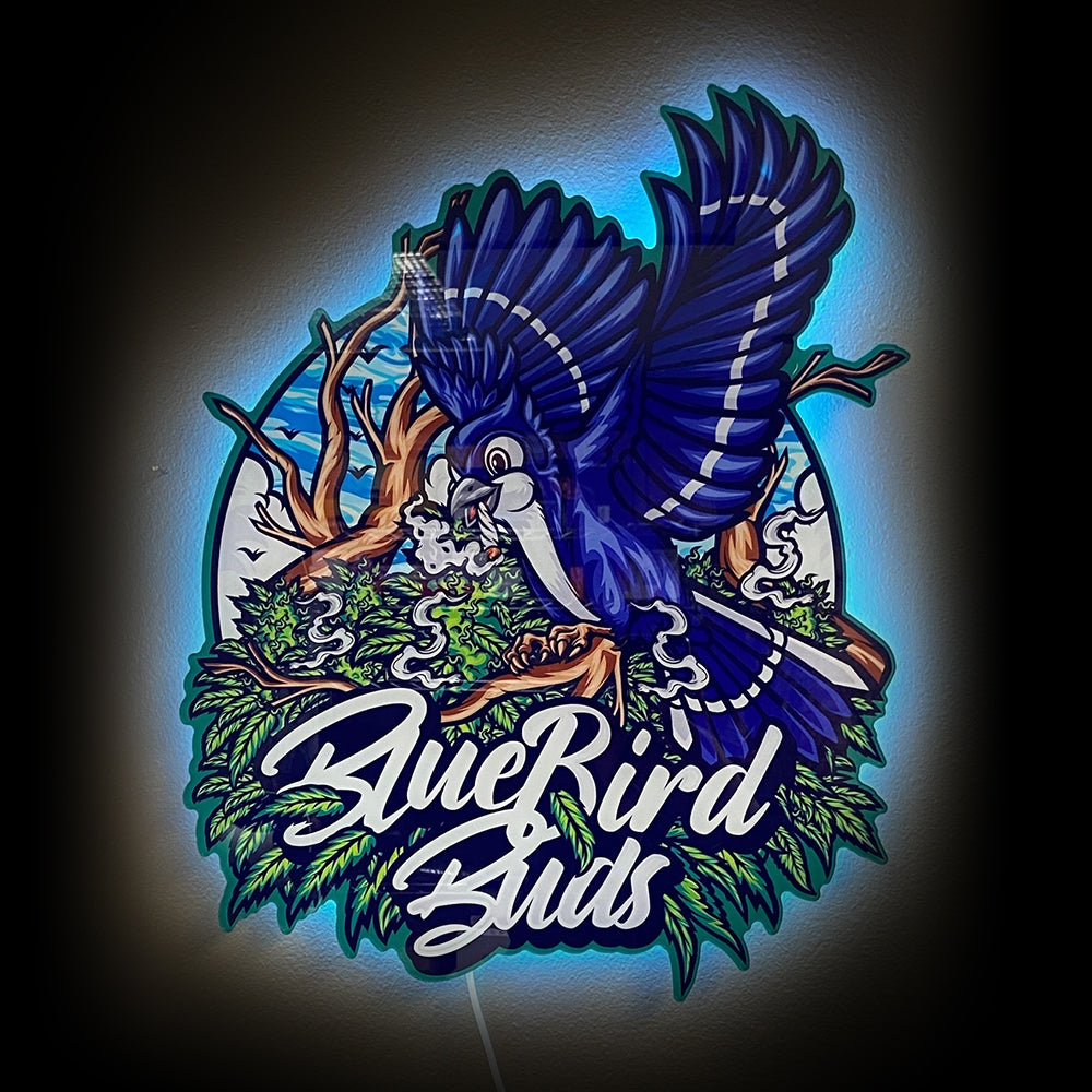 Sign is made of Glossy Acrylic Material. Our LED lights include 150 bulbs per meter with over 25 unique LED light color settings, giving your art a very bright backlit glow. Signs come standard in landscape or portrait orientation. Get your sign custom cut to the shape of your logo for an added professional look. Our LED Wall Art signs are ready and easy to mount, just hang it on a screw and plug it into power source.