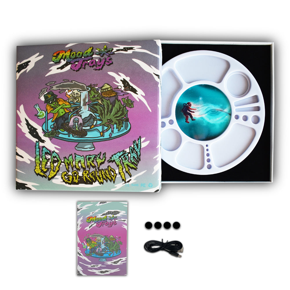 Great for rolling in the dark for any occasion with your friends. MOODTRAYS™ includes a built in fast charging lithium battery and USB-c charge cable, so you can enjoy the rolling tray lights for 4-6 hours.